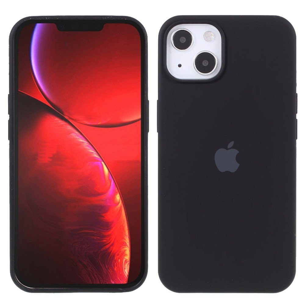 For iPhone 14 Silky Touch Solid Silicone Phone Case Fiber Lining Anti-Fingerprint Shockproof Cover – Black