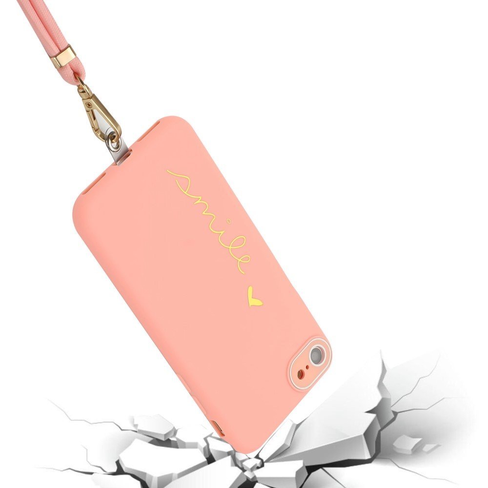 For iPhone 7 / 8 4.7 inch / SE (2020) / (2022) Lacquered Phone Case Protective TPU Back Cover with Lanyard and Camera Lens Film – Pink