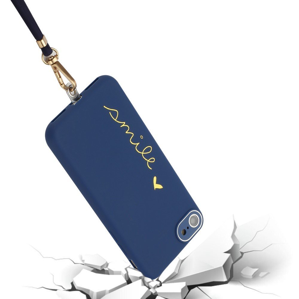 For iPhone 7 / 8 4.7 inch / SE (2020)/(2022) Lacquered Phone Case Protective TPU Back Cover with Lanyard and Camera Lens Film – Sapphire