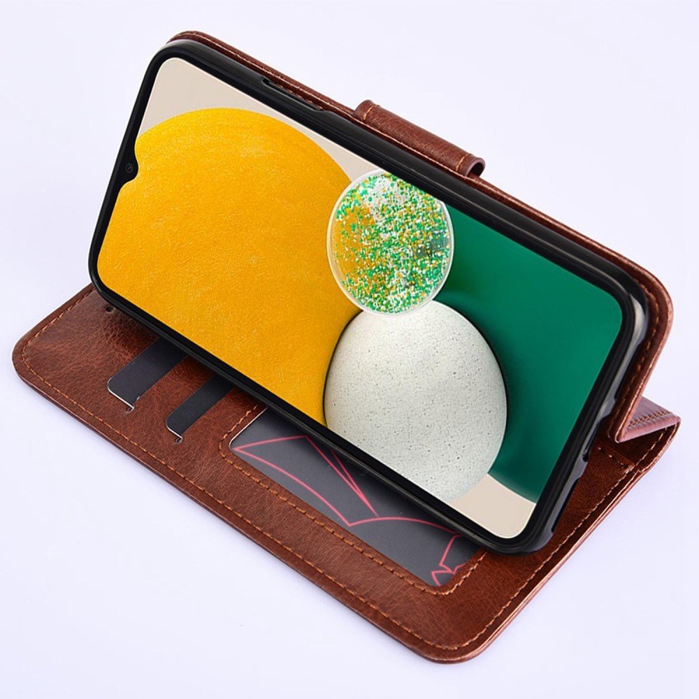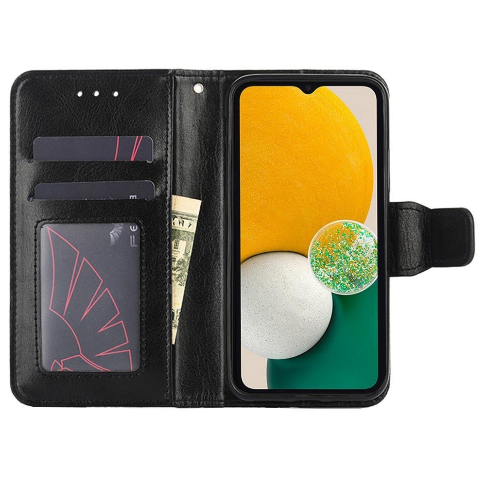 For Samsung Galaxy A13 5G / A04s 4G (164.7 x 76.7 x 9.1 mm) PU Leather Stand Up Flap Phone Case Shock Absorption TPU Wallet Flip Cover – Black