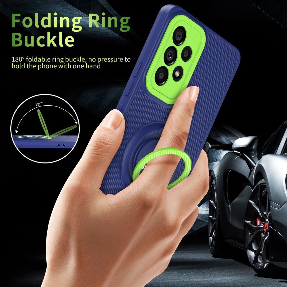 For Samsung Galaxy A33 5G Anti-scratch Hard PC+ TPU Phone Case Cover Protective Shell with Foldable Ring Kickstand – Blue/Green
