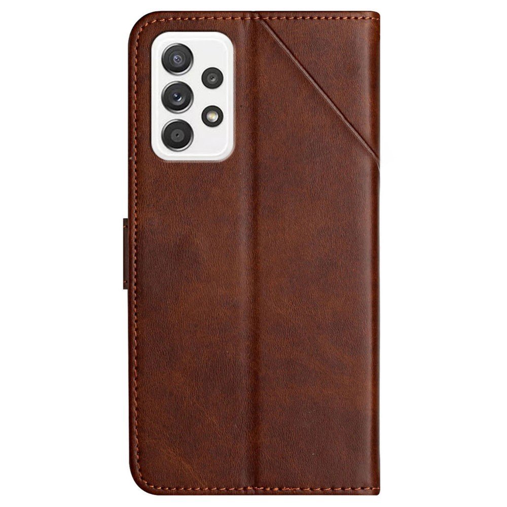 For Samsung Galaxy A33 5G Imprinting Lines PU Leather Stand Wallet Phone Case Full Protection Cover – Brown