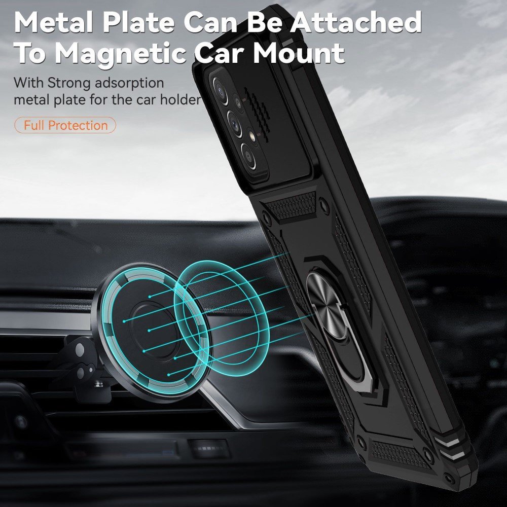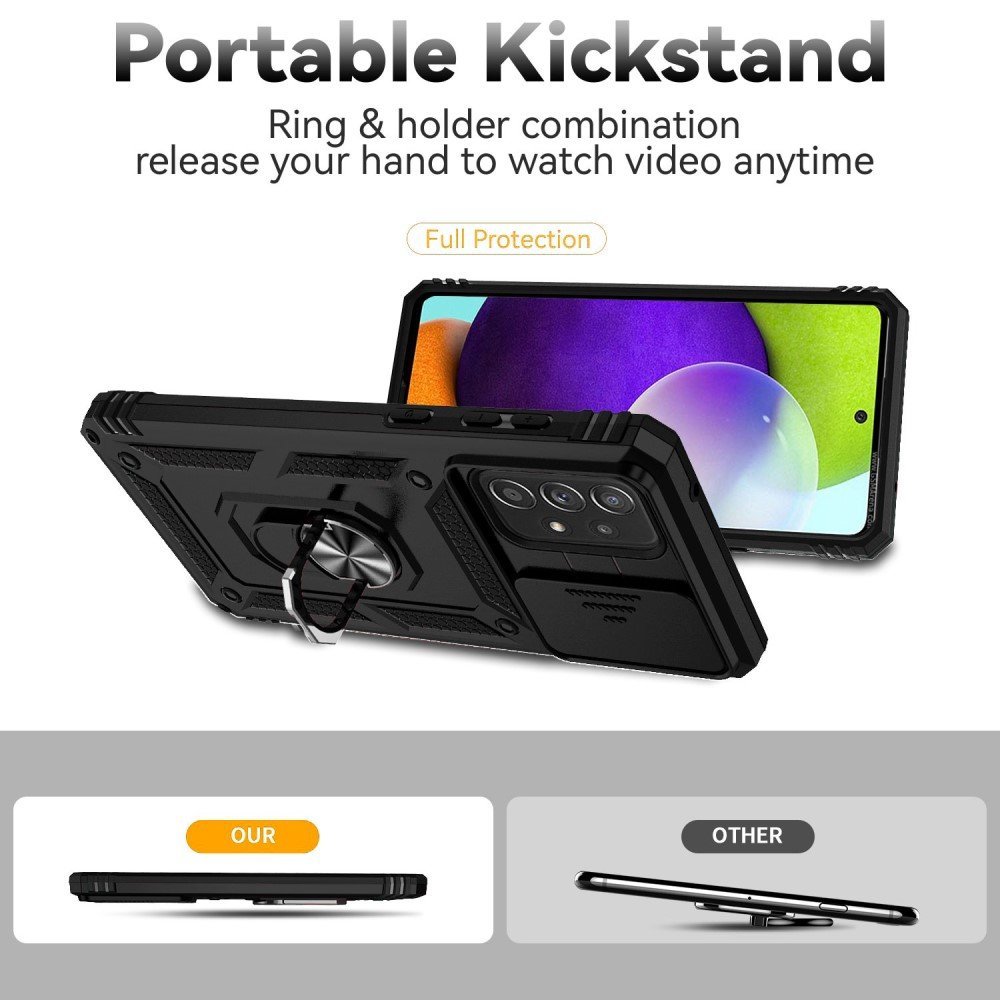For Samsung Galaxy A73 5G Case Ring Magnetic Kickstand PC + TPU Dual Layer Shock Absorption Protective Phone Protector with Camera Lens Cover – Black