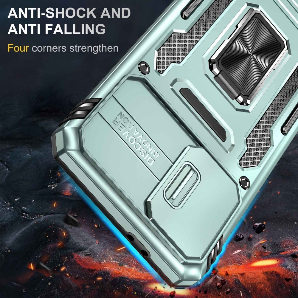 Coque antichoc avec anneau support et cache caméra coulissant.