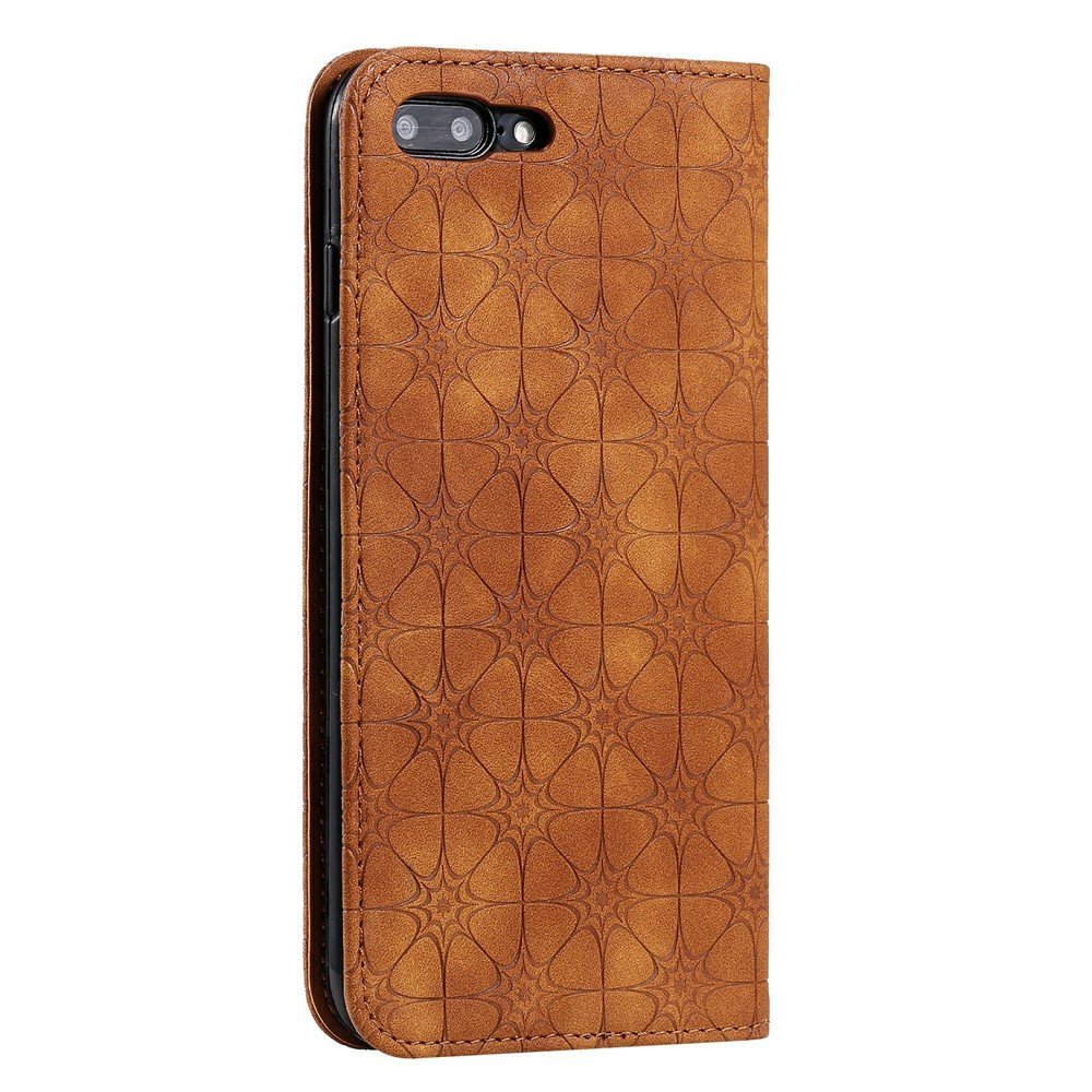Imprint Flower Surface Auto-absorbed Cover with Card Slots for iPhone 7 Plus/8 Plus 5.5-inch – Brown