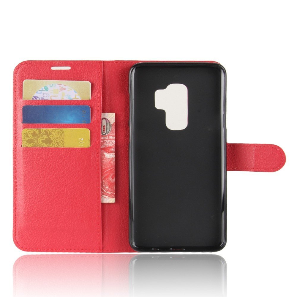 Litchi Skin Magnetic Leather Stand Cover for Samsung Galaxy S9+ G965 Wallet Design Phone Case – Red