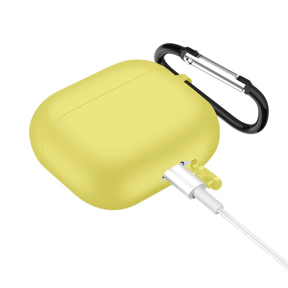 Solid Color Bluetooth Earphone Shell Shockproof Protector Silicone Case Cover for AirPods 3 – Yellow