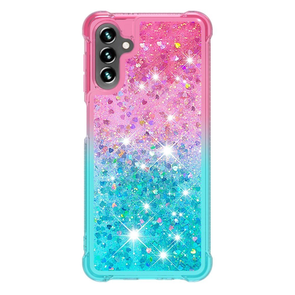 YB Quicksand Series-3 for Samsung Galaxy A54 5G Shockproof TPU Back Cover Gradient Quicksand Liquid Flowing Sparkle Phone Case – Pink / Sky Blue